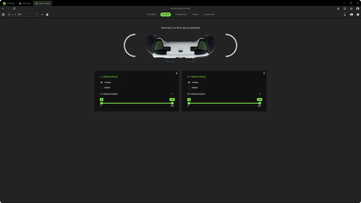 Optimize the sensitivity of both triggers individually to create custom actuation ranges.