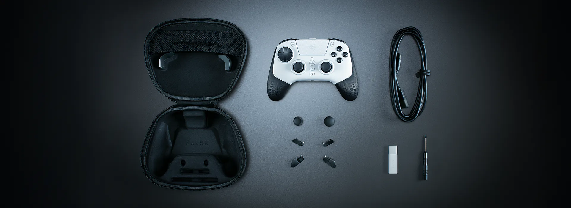 Always be tournament ready with a carrying case that holds your controller and its accessories, including 2 replaceable thumbstick caps, a 2 m cable, and a toolkit for back button removal.
