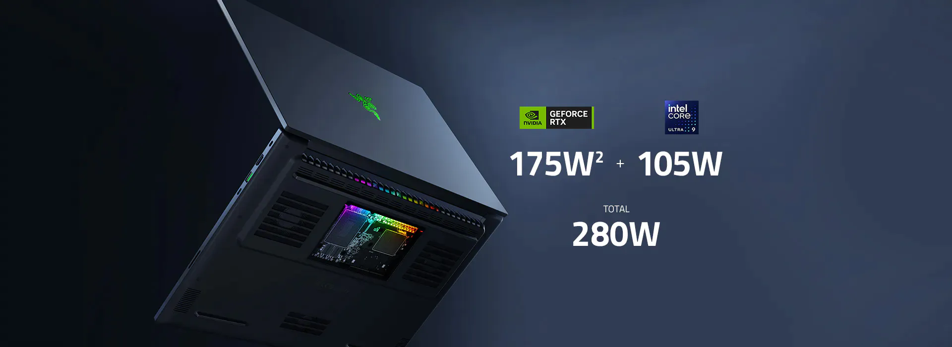 As of February 25, 2025 based on comparable 18" gaming laptops. 175W TGP available for 5090/5090 models only. 5070 Ti models up to 140W TGP.